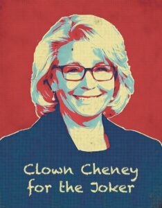 When you think the clowns can’t get any funnier, the crown jewel of clowns (AKA: War Pig Liz Cheney) performs an unbelievable act of silliness. Actually a turncoat, if not treasonous act, goes to the opposing tent of clowns and supports their ringleader, the one some say has the face of the Joker from Batman, that cackles in between verbal gibberish. Is their no loyalty among clowns?